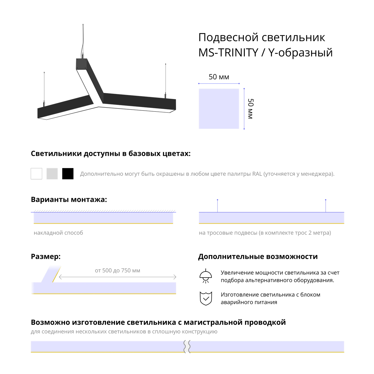 Светодиодный фигурный светильник MS-TRINITY Y-образный 3x500mm 60W 3000/4000/6000К