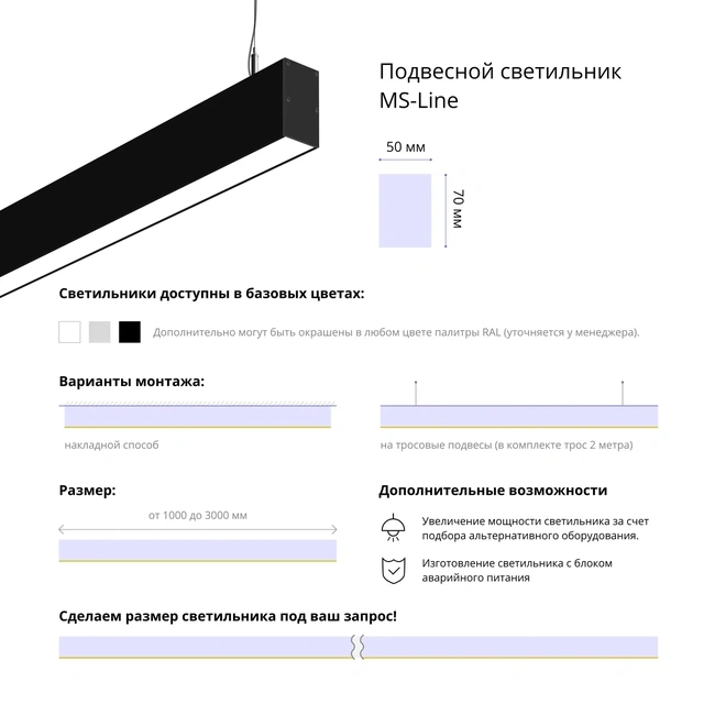 Подвесные линейные светильники бренда MS-LINE – это идеальное сочетание стиля, функциональности и надежности. Выберите подходящий вариант для вашего интерьера и наслаждайтесь качественным освещением каждый день.