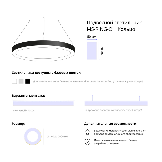 Кольца светодиодные светильники MS-Line – это уникальное решение российского производства, сочетающее в себе эстетическую привлекательность, функциональность и надежность. Изготовленные из высококачественного алюминиевого профиля толщиной не менее 3 мм, эти светильники обеспечивают длительный срок службы, подтвержденный гарантией в 5 лет.